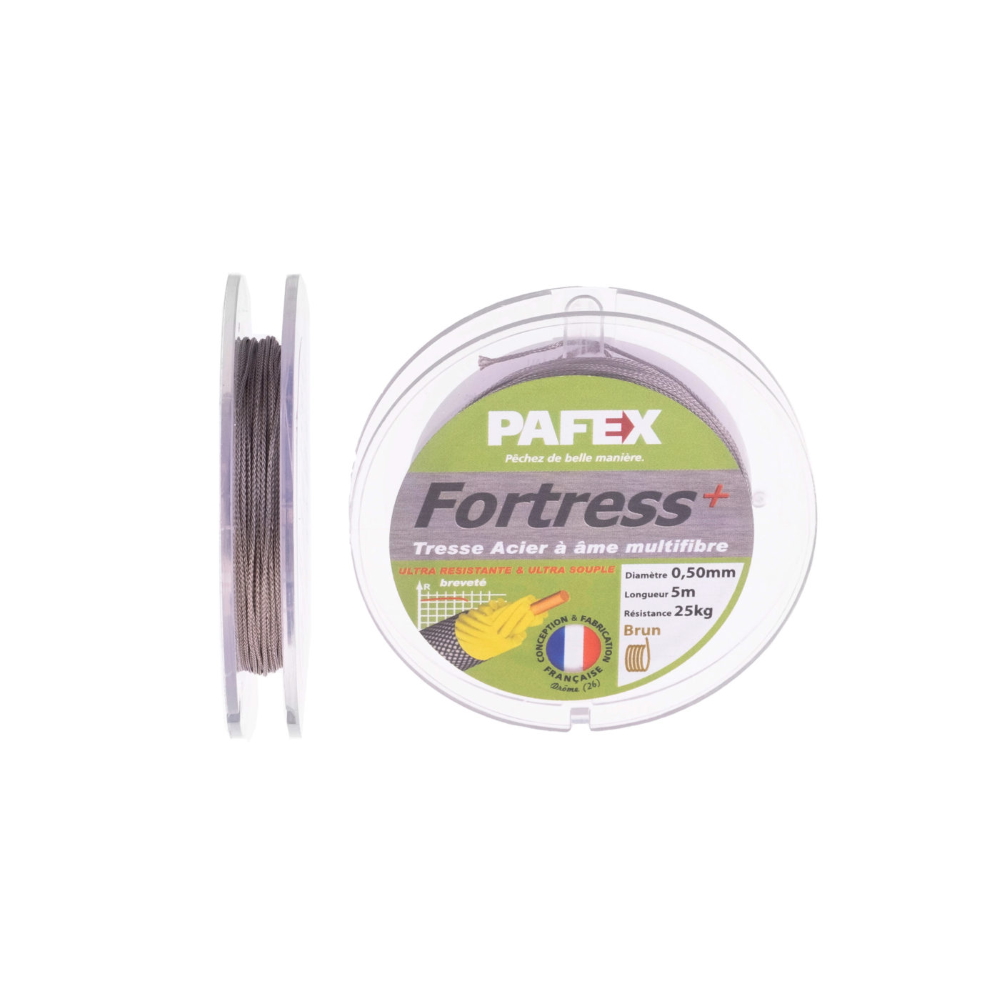 Fortress Predator Tafslina består av en kopparkärna på vilken två flätade lager av dyneemfiber och en flätning i rostfritt stål. Materialet har en mycket mjuk struktur som gör det möjligt att binda tafsen direkt till ett bete eller en lina. Knuten glider inte och den vridna tafsen kan lätt korrigeras mellan fingrarna genom att dra. Ett utmärkt val för både trollare och kastfiskare.