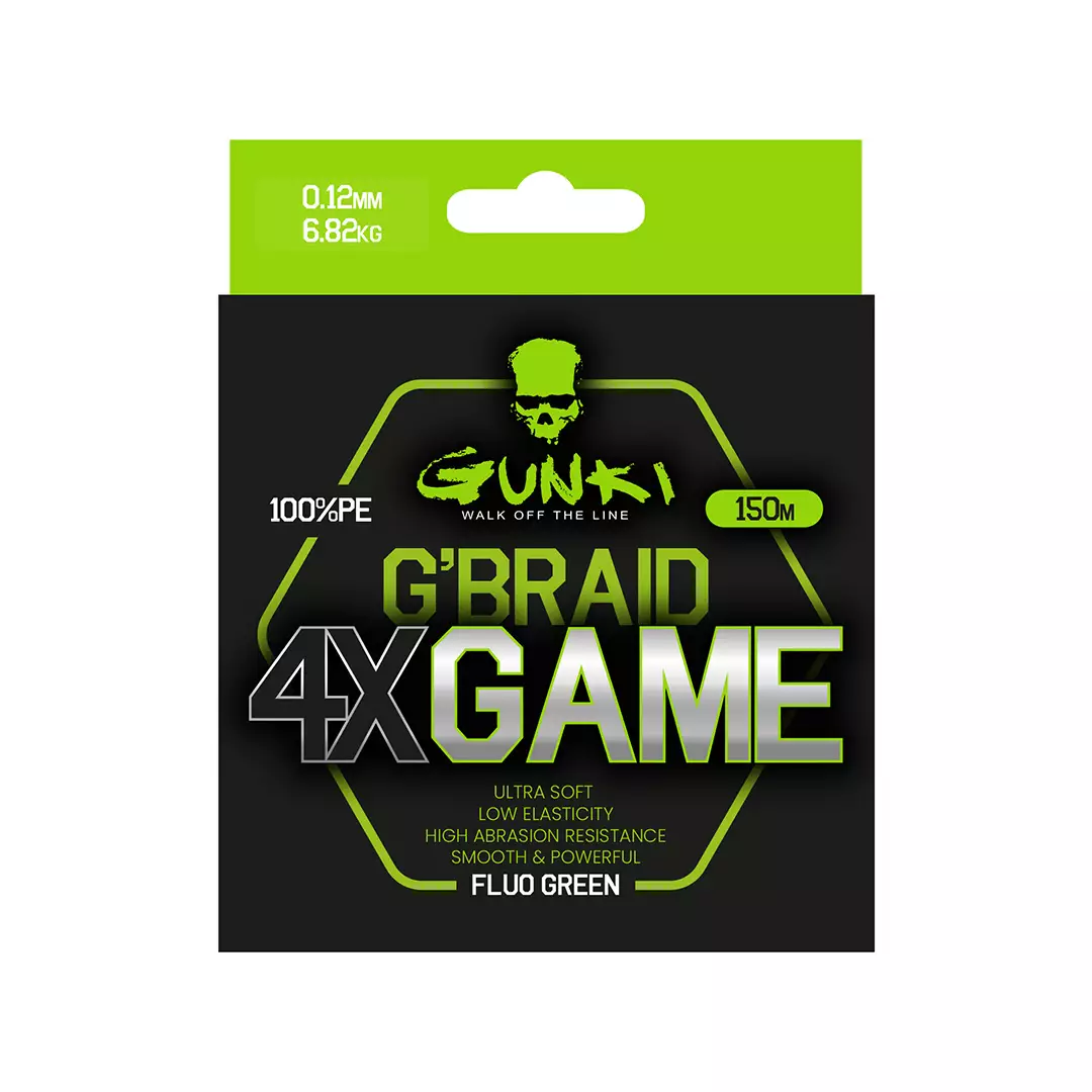 Gunki G'BRAID 4X GAME multifilamentlina är tillverkad av tätt flätade PE-fibrer, vilket garanterar dig oöverträffad draghållfasthet och nötningsbeständighet!
