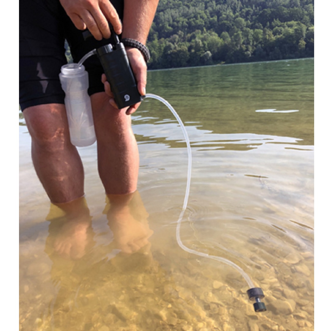 Origin Outdoor Water Filter 'Klondike' kan ta bort upp till 99,9999 % av protozoiska cystor, sporer, bakterier och sediment från dricksvatten med hjälp av en patron med dubbla keramiska membran.