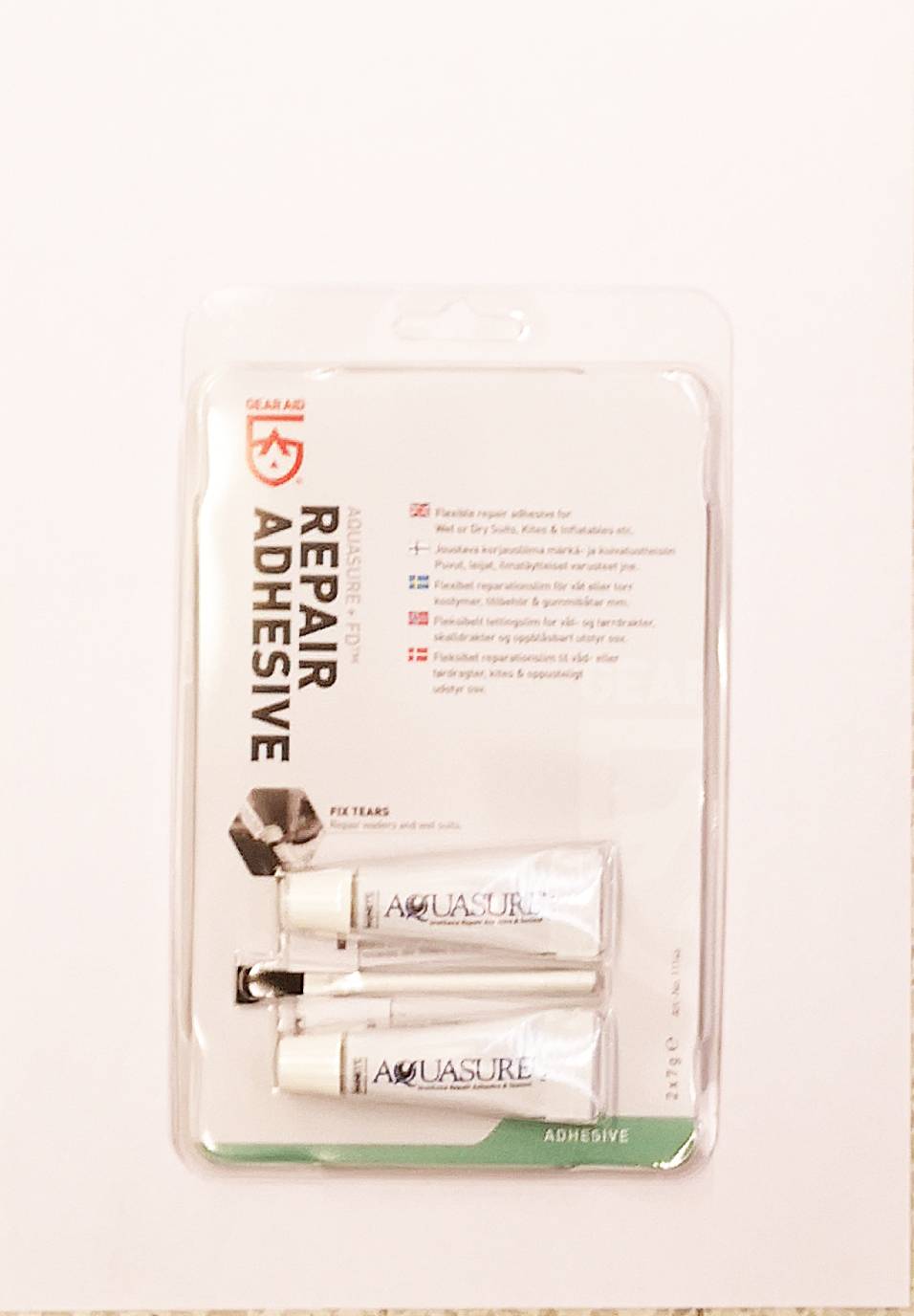 Aquasure, reparationslim 2x7g är ett flexibelt material för att reparera läckande skor, vadare, torrdräkter, handskar eller nästan vad som helst. Aquasure bildar en hållbar och flexibel film som är helt vattentät.