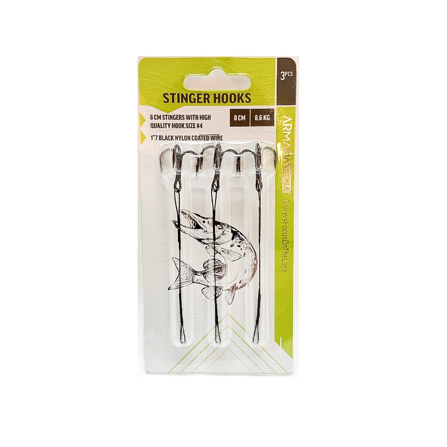 Armadas extra krok med svart nylonbelagd tråd och en högkvalitativ svart nickelkrok. Förpackning med 3 krokar.