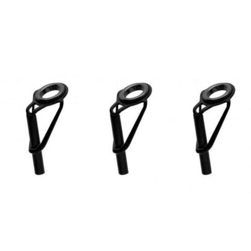 I detta paket hittar du tre spötspetsöglor i olika storlekar, som kan användas för att reparera spöt om det går sönder från spetsen eller spetsringen faller isär. Det finns tre olika typer, vars monteringsdiametrar är 2,4 mm, 2,8 mm, 3,2 mm.