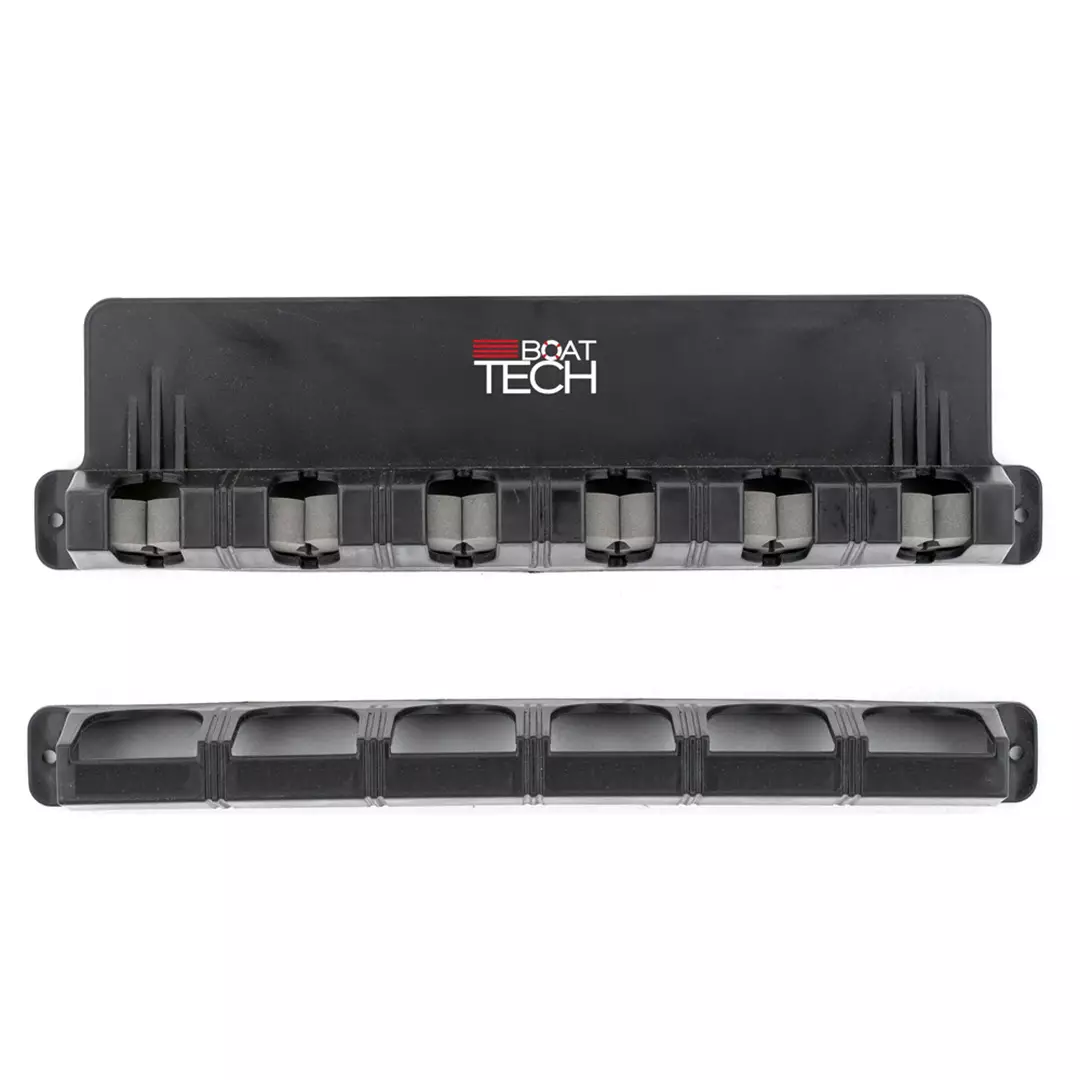 En praktisk och platsbesparande förvaringslösning för alla dina spön. Denna slitstarka spöhållare i plast är lämplig för installation på båt, garage, förråd eller stuga.