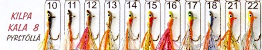 Kilpakala 8 Med svans flera färger mormyska med färgsvans. Ett utmärkt val under en pilk i tafs, om du vill ha de stora abborrarna.