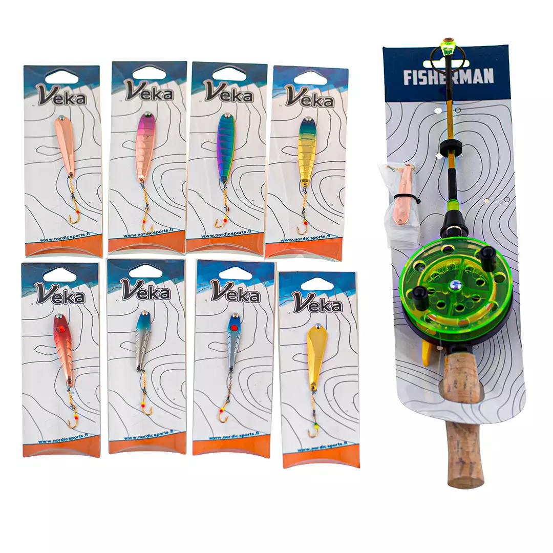 Setet är baserat på det pålitliga Fisherman-isfiskespöset i serie 2, som erbjuder en bra känsla för isfiske. Det inkluderar ett brett utbud av populära vertikal pirkar, som JUUSO, KILPI, HELMI, SAKU och SULO. Färgvalet är utformat för att täcka alla förhållanden, från klart vatten till grumligt och från soliga dagar till skymningstider. Olika viktklasser från 6 gram till 12 gram möjliggör fiske i olika djup och strömmar.