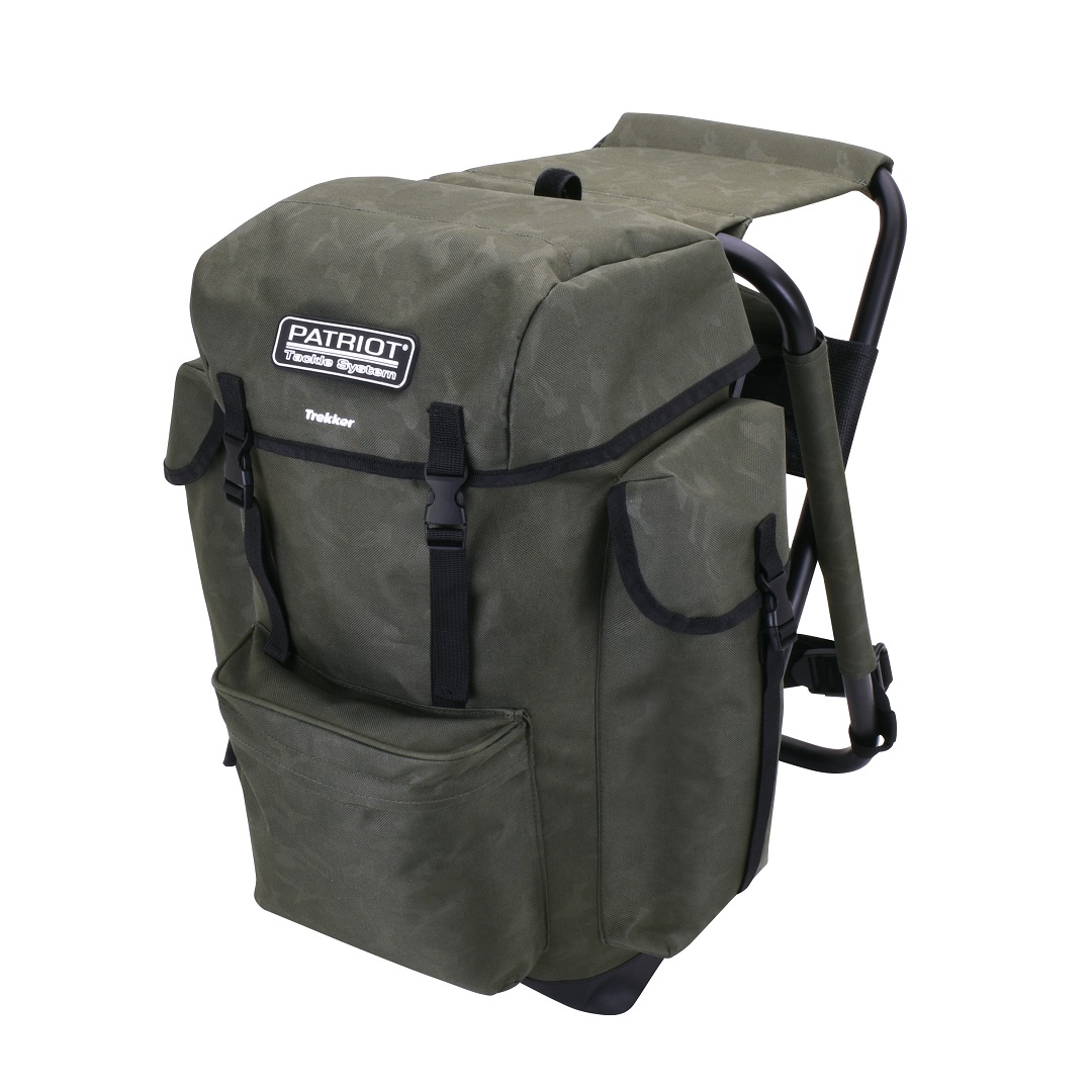 Patriot Trekker är en prisvärd och funktionell stolryggsäck för olika användnings ändamål. Utöver den stora huvudsäcken har ryggsäcken gott om rymliga och praktiska fickor för till exempel mat, termosflaska, isfiskeutrustning och jakt- och campingutrustning. Den förstärkta och vattentäta basen håller ryggsäckens innehåll skyddat från fukt, till exempel vid vandring på is eller i fuktig terräng. Patriot Trekker stolryggsäcken har en lätt och robust aluminiumram och vadderade axelband, vilket gör det bekvämt att bära ryggsäcken även över längre avstånd.