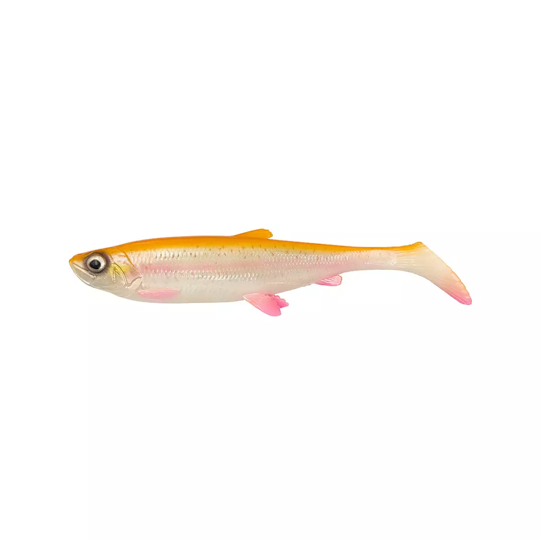 Savage Gear 3D Herring Shad V2 är baserad på en 3D-skanning av en riktig sill, men imiterar också perfekt många andra insjöfiskar som sik och mört. Detta mjuka spadetail-bete har otroliga detaljer och en fantastisk rullande och sparkande gång. Betets breda, platta sidor skimrar när det rör sig genom vattnet. De mycket realistiska fenorna ger betydande extra rörelse till det spadetail-betet, som har ett högt glasskallra inuti. Betet är tillverkat av supermjukt PVC-material och har fantastiska färger och en doft som stimulerar huggreaktioner. Ett spår i magen möjliggör en snygg installation av en extra krok, eller stinger, för en perfekt presentation.