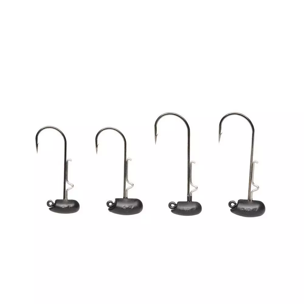 En exakt designad Ned jigghuvudkollektion med storlekar lämpliga för små och medelstora mjuka beten. Huvudformen gör att beten står upprätt på botten och möjliggör långsam dragning och pauser som lockar hungriga rovfiskar att slå hårt. Jigghuvudena har extremt vassa, smidda krokar av kolstål med nanospetsar och mikro-hullingar. Varje krokstorlek är noggrant designad för optimal styrka och penetrationsförmåga. Den rostfria kroppshållaren inkluderar också en Pro Peg-ögla och hulling för att säkerställa att beten stannar på plats.