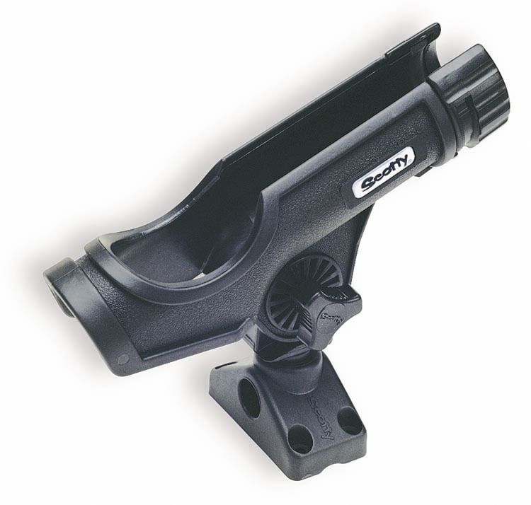 Scotty Powerlock, spöhållare lättanvänd och högkvalitativt spöhållare som du enkelt kan justera i alla riktningar. Spöhållaren är öppen upptill och spöt kan låsas med en vridbar låsring om så önskas. Mycket hållbar konstruktion och lätt att fästa.