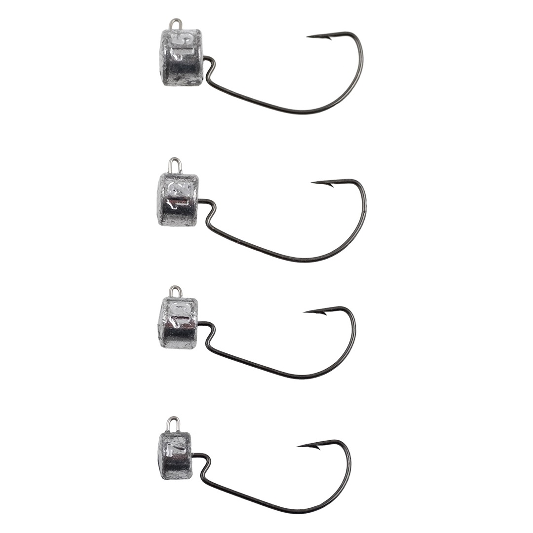 Veka Ned Jigghuvud med offset krok. Lämplig för räfflade jiggar. Vinklar upp flytjiggen från botten. Kan riggas som grässkyddskrok. Detta set är designat för användning med gösjiggar.