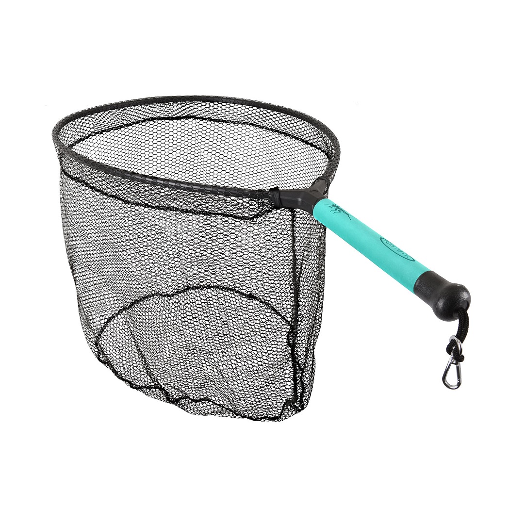 Ett lätt håv med en aluminiumram! kort 21cm handtag med en riktigt snygg grön EVA-beläggning. Det knutlösa gummihåven är 40 cm djupt. Riktigt bra håv för öringfiske. Ramstorlek 41 x 50 cm.