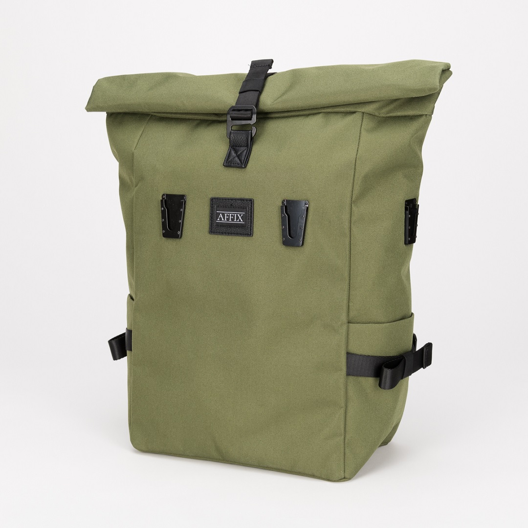 Affix produktfamiljen dagryggsäck, volym ca 20 liter. Slitstark ryggsäck för resor och vardag. Den kompakta och smala designen möjliggör enkel och behaglig rörelse och om du behöver mer utrymme kan du fästa Affix HookOn extra väskor på ryggsäcken. Med extra väskor och en rolltop-öppning är 20L dagryggsäcken även lämplig för längre resor.