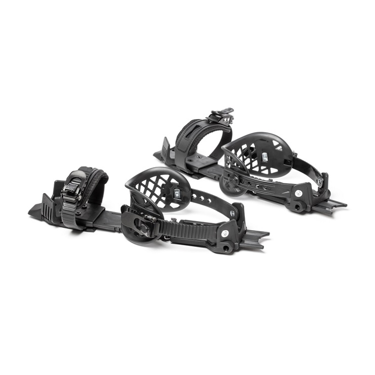 Snöskons/terrängskidans universal -bindning är en lättanvänd bindning, som passar flera storlekar och olika skotyper. Bindningen är lätt att justera med handskarna på.