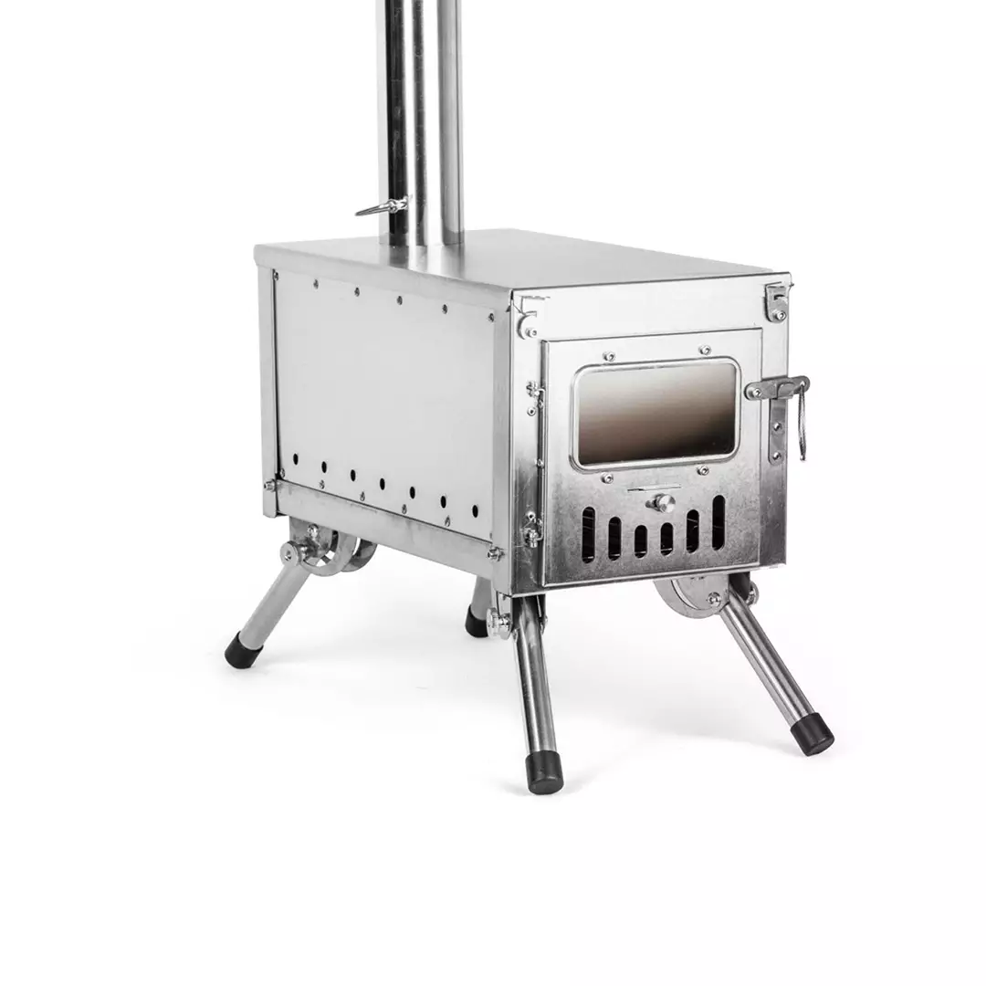 Denna tältkamin i rostfritt stål är speciellt utformad för uppvärmning av campingtält, små stugor och lantliga bostäder.
