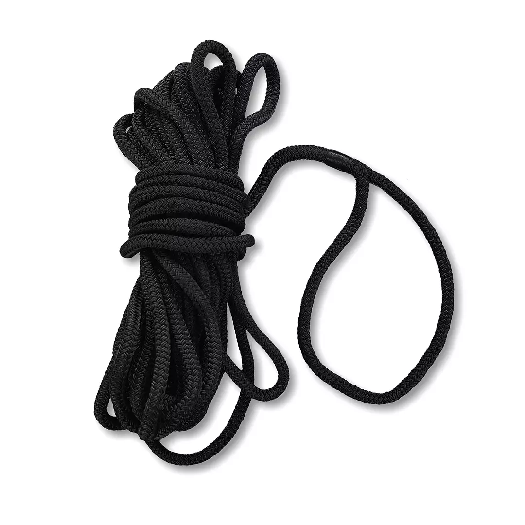 Svart polypropensnöre med en färdig ögla i ena änden.