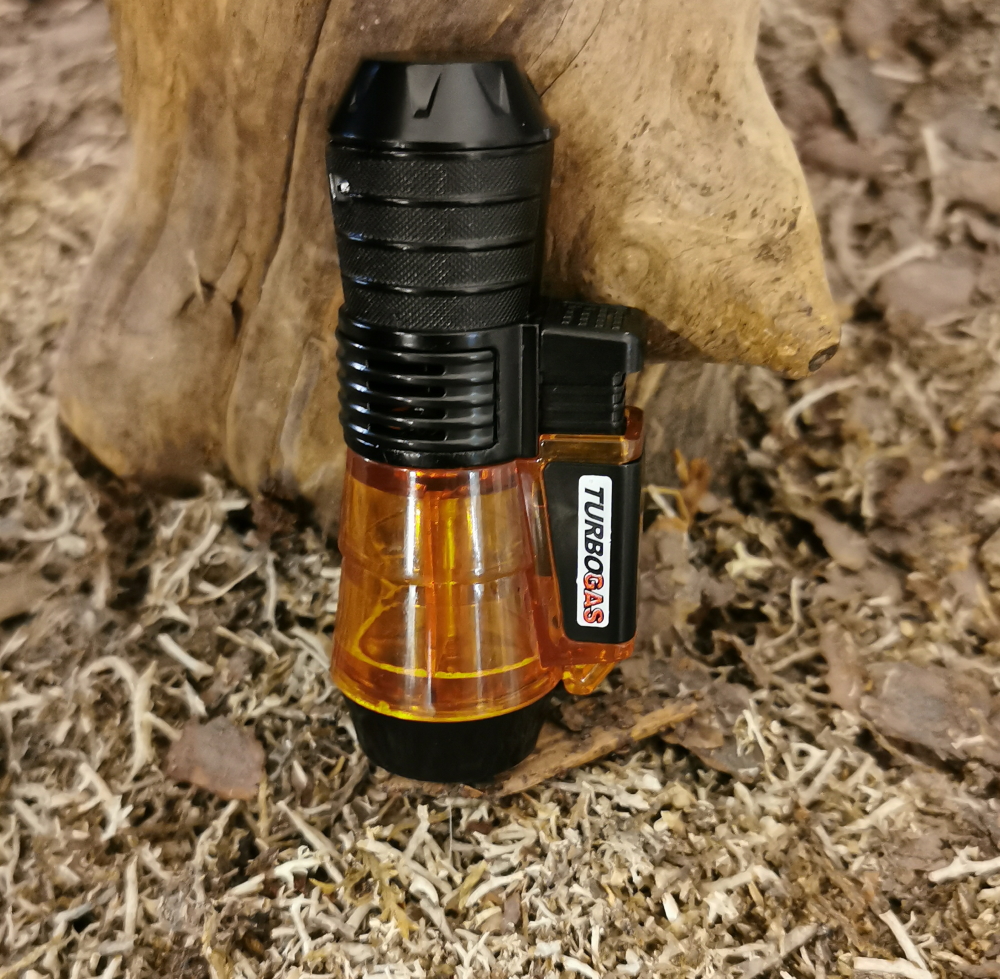 Turbo Gas III Stormtändare 3 lågor snabb och miljövänlig som är påfyllningsbar. Tändaren har 3 lågor som håller mot vind. Lågans storlek kan justeras med skruven som finns i botten på tändaren.