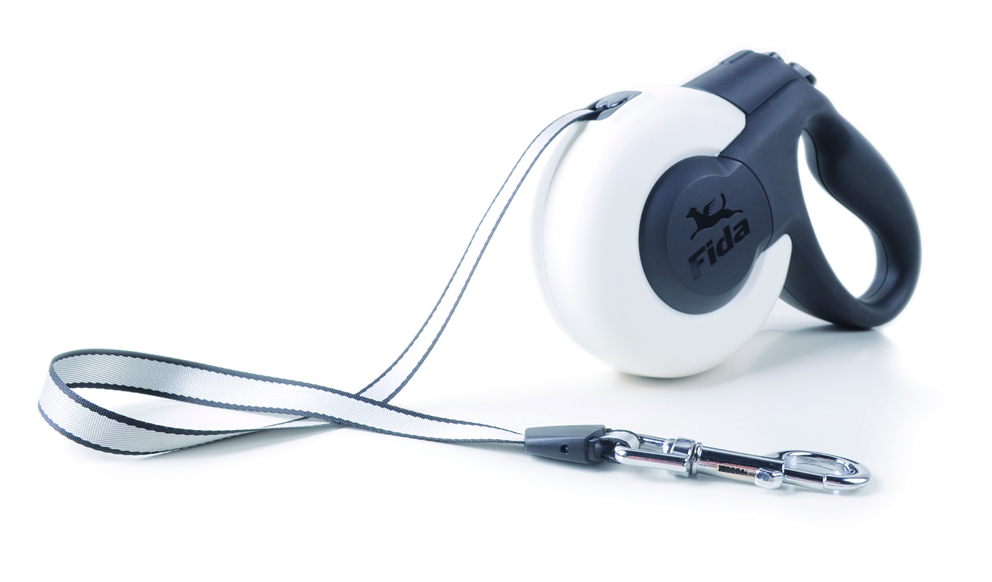 Fida Mars -Rullkoppel denergonomiska designen är lätt och bekväm i handen. Du får ett bra grepp om handtaget och remmen lindar smidigt in i kopplet. 5 m koppel för max 50 kg hund