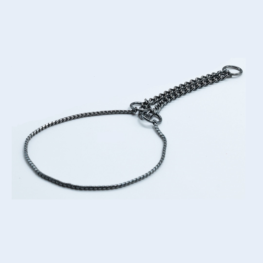 De halvåtdragande och strypande metallhalsbanden i Jokken snake serien är främst designade för hundutställningar. Valbar storlek.