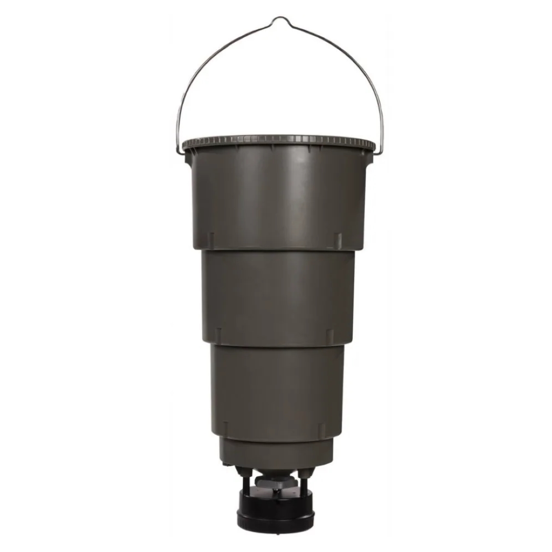 Moultrie Allt-i-ett 19 liters foderbehållare + Timer Kit (4xAA-batterier) lätt och bekväm matningsanordning, med hopfällbar matningshink. Digital timer, max 4 utfodringar/dag. 19l hink och foderspridare i metall, fungerar med 4 AA-batterier (ca 3-4 månader beroende på förhållanden och inställningar). Enheten är omedelbart klar för användning.