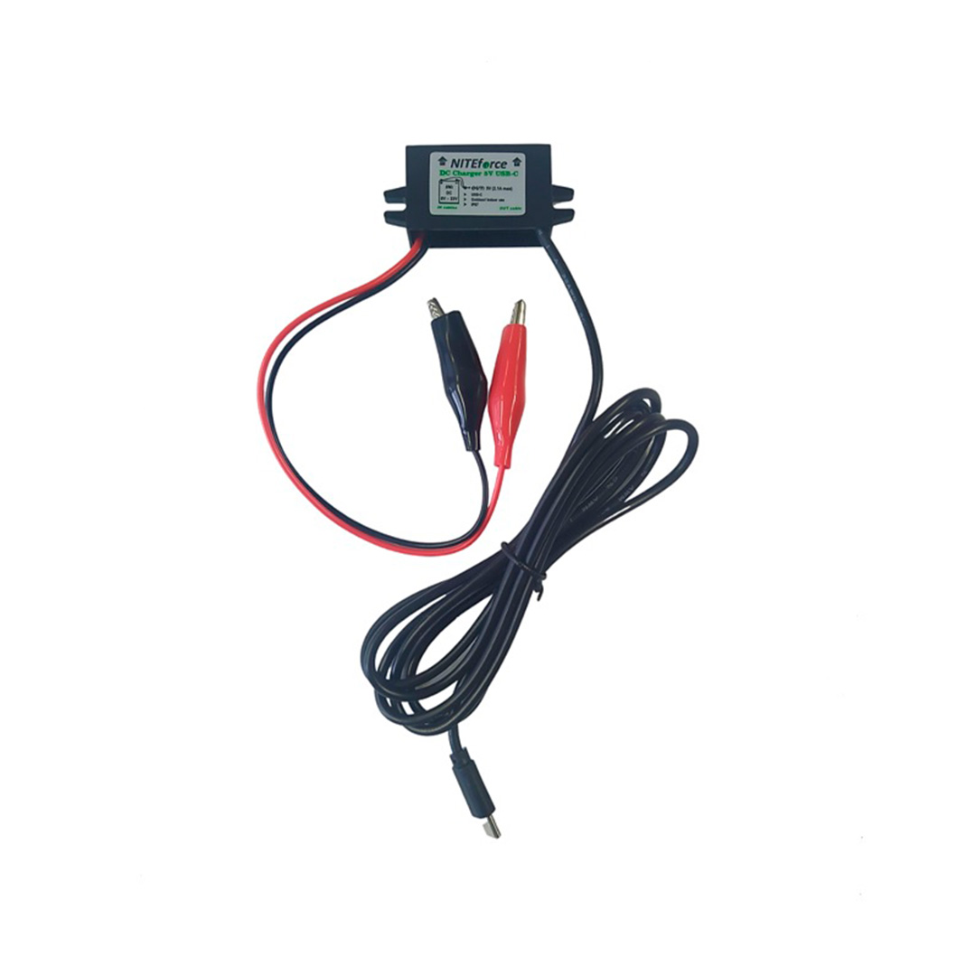NITEforce DC-laddaren är avsedd för extern strömförsörjning av NITEforce LIVE 360 Green viltkamera. Du kan använda den för att förse kameran med extern underhållsenergi, t ex från ett 12V-batteri under vinterbruk. DC-laddaren omvandlar den högre 12V-spänningen till en lägre spänning (5V 2A), som är kompatibel med kamerans driftspänning.