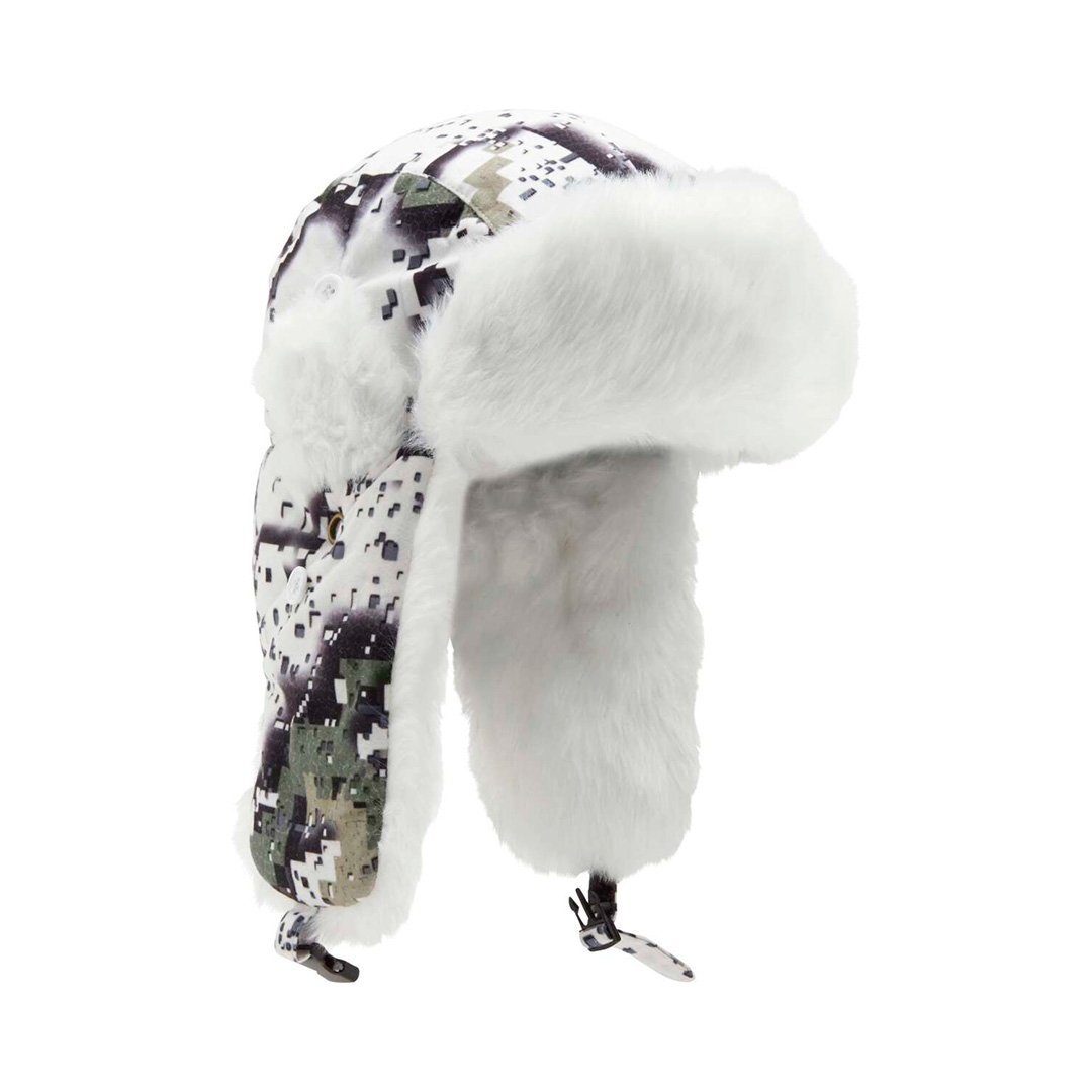 En pälsmössa med ett unikt DESOLVE® kamouflagemönster. Spännband under hakan och med klaffar vid öronen. Mössan är helfodrad med riktigt varm konstgjord päls.