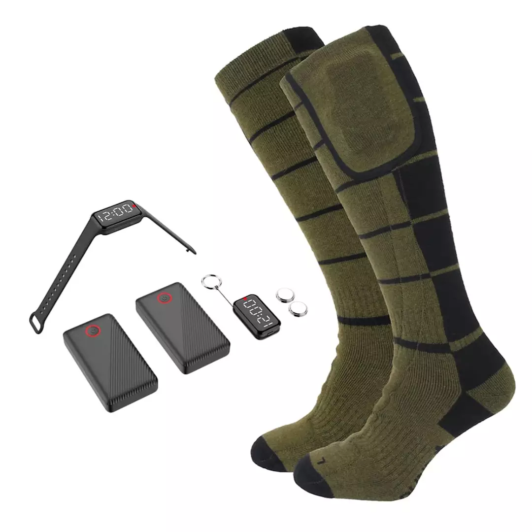 Strumpans inbyggda värmesystem drivs av en 3,7V 3500mAh powerbank och har tre olika värmelägen. På utsidan av strumpan finns en ficka upptill med en USB-C-kontakt där du kan ansluta en powerbank och förvara den under användning.
