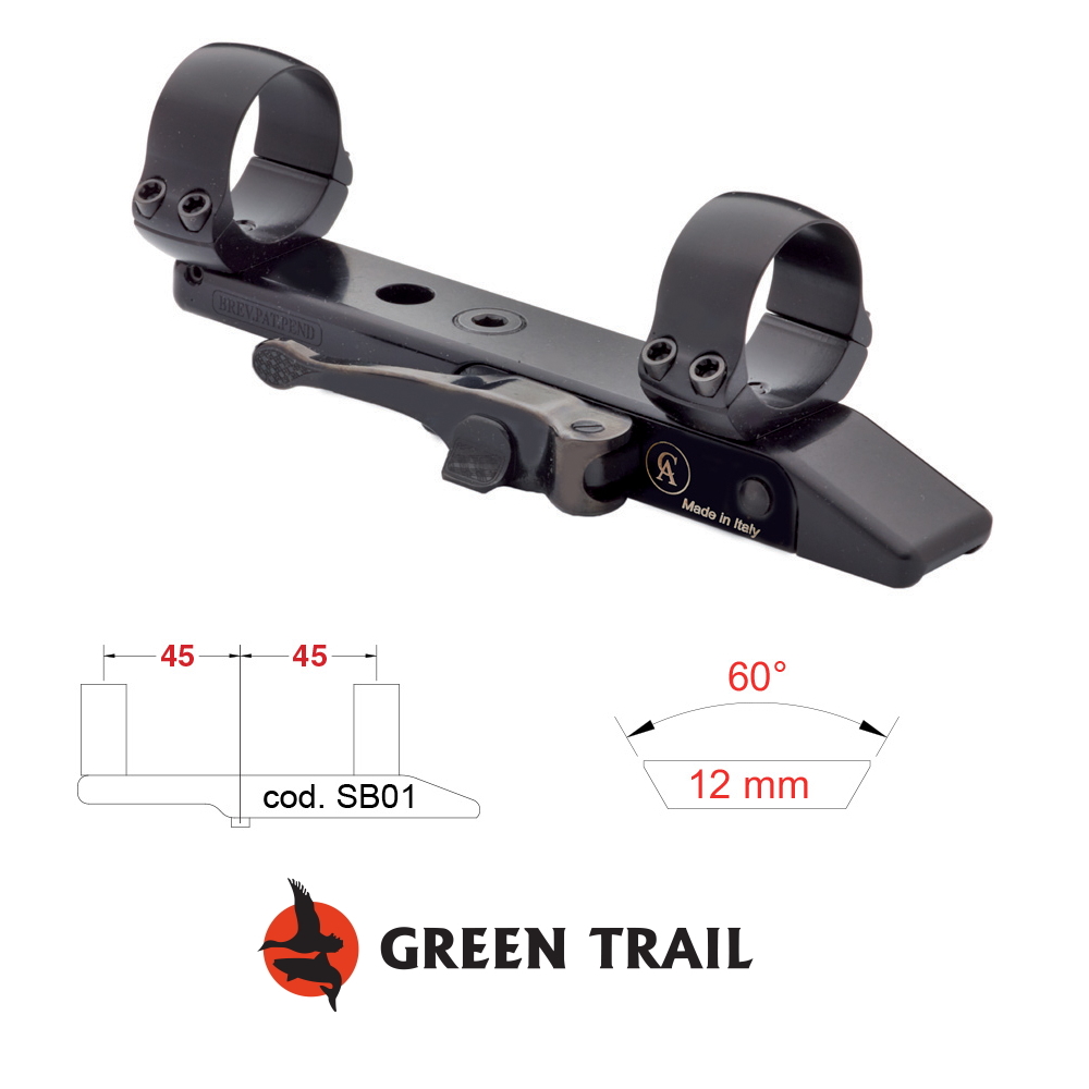 Contessa Simple Blacks Single Shot Rifle, 30mm, 5mm fästet är utformat för enkelskotts gevär med en 11-12 mm bred skena. Längden på den del som fäster vid kikaren är 72 mm. Basen har 30 mm ringar med en höjd av 5 mm
