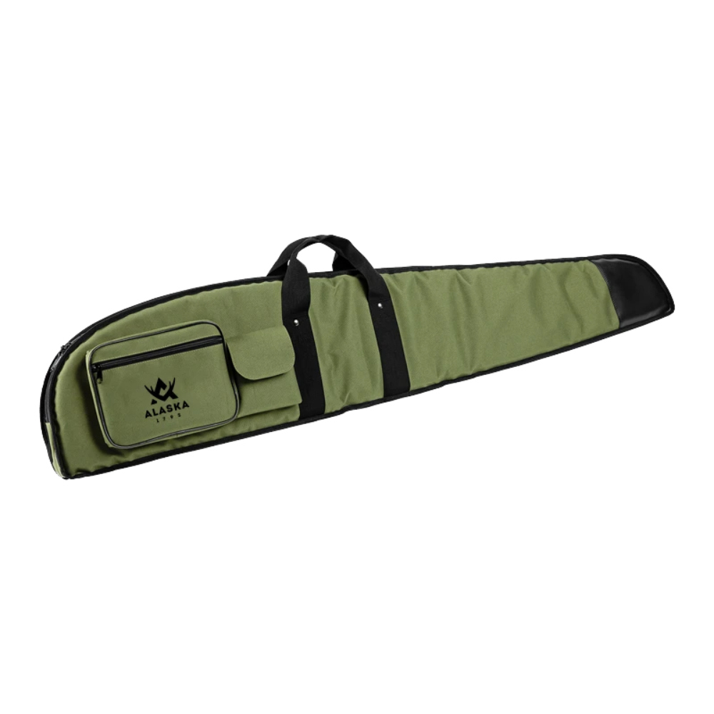 Alaska Single Gunbag är lämplig för att bära ett hagelgevär eller kulgevär. Fodralets nylonfoder skyddar vapnet mot repor och skador, och den kraftiga stoppningen skyddar vapnet mot stötar och kompression. Yttyget på fodralet är slitstark Cordura-Nylon. Fodralet har två sidfickor för tillbehör: en större ficka med blixtlås och en mindre med kardborrfäste.