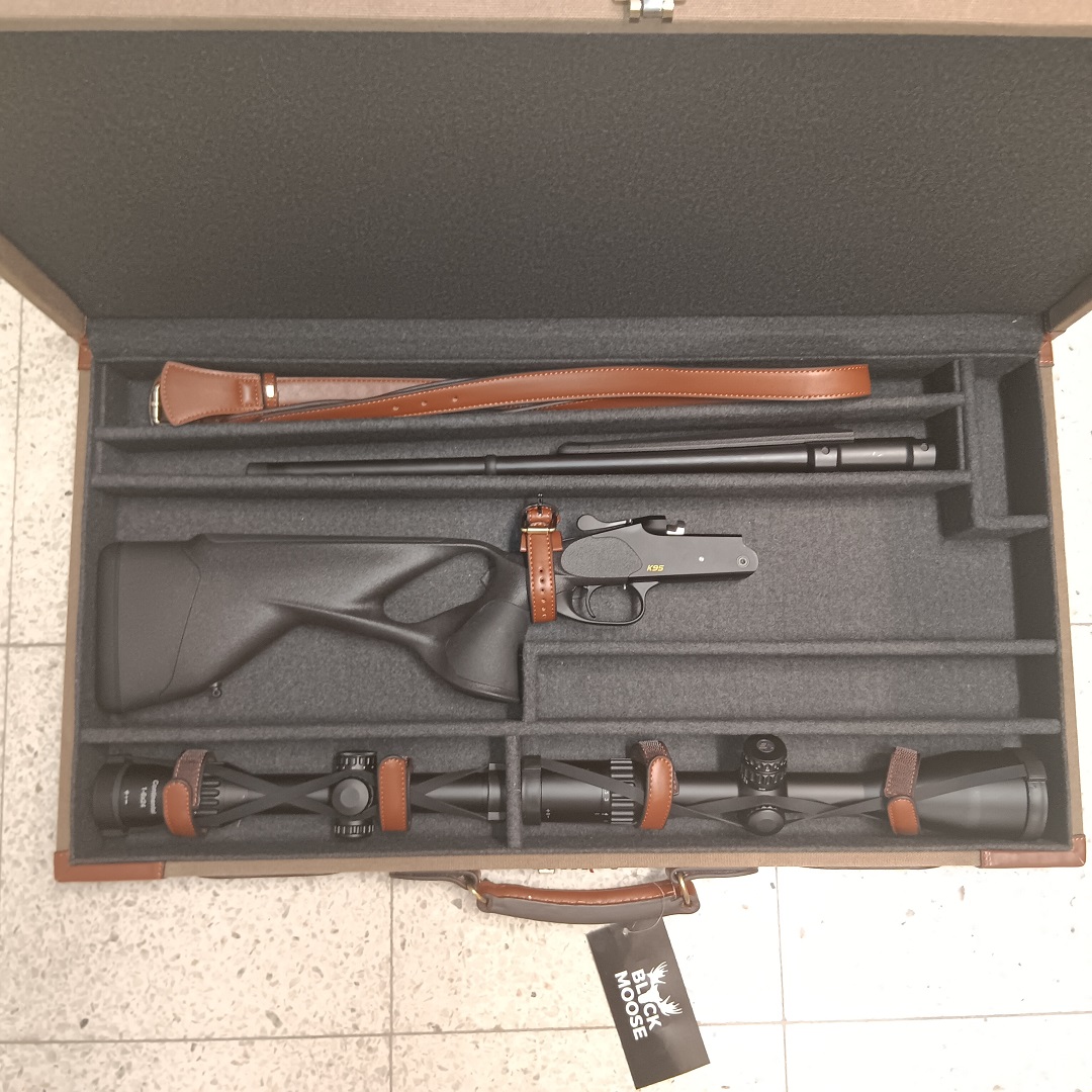 Kofferten passar även till exempelvis Blasers 97 dubbelstudsare (demonterad) med 56cm pipor.