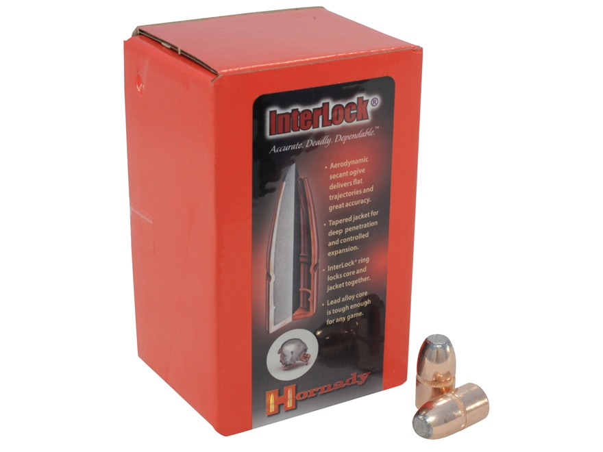 Hornady Kula .458 22,70g Interlock FP 50st Kula med blykärna för handladdning. Kula med flatnos (FP).