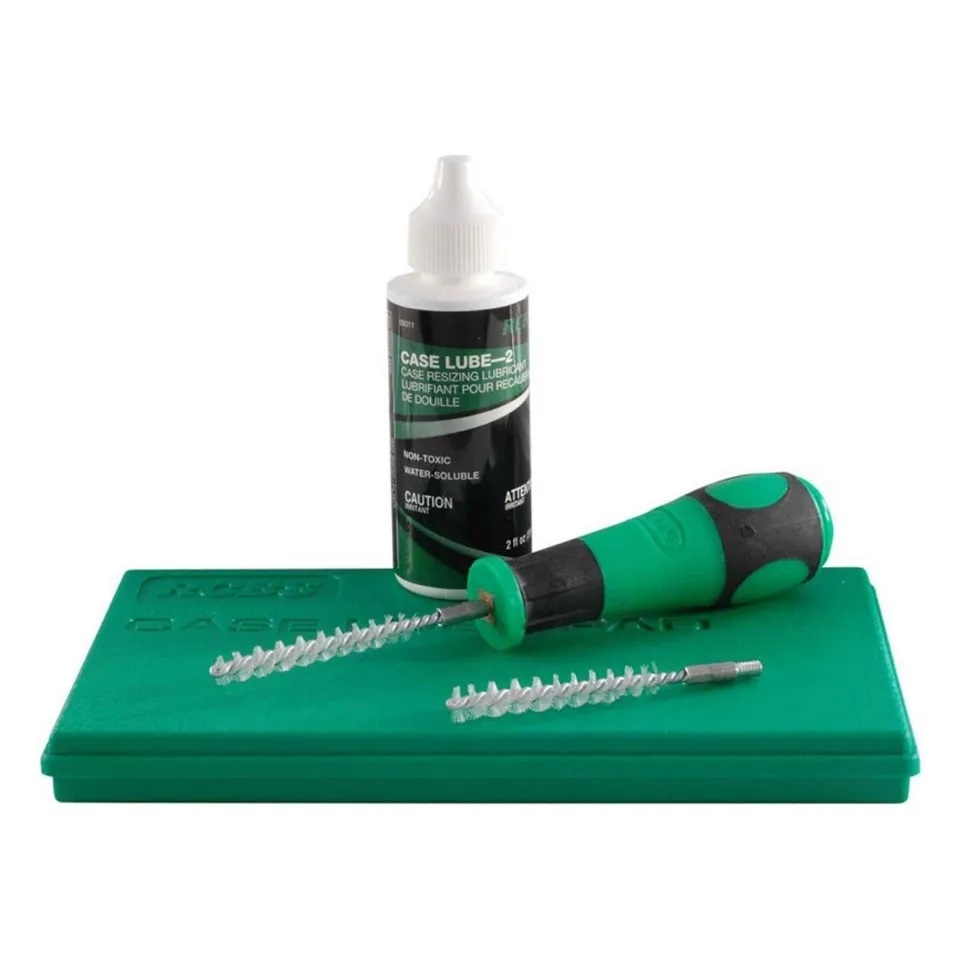 RCBS Hylsvårdsset innehåller ett underlag, hylsborstar och hylsolja.